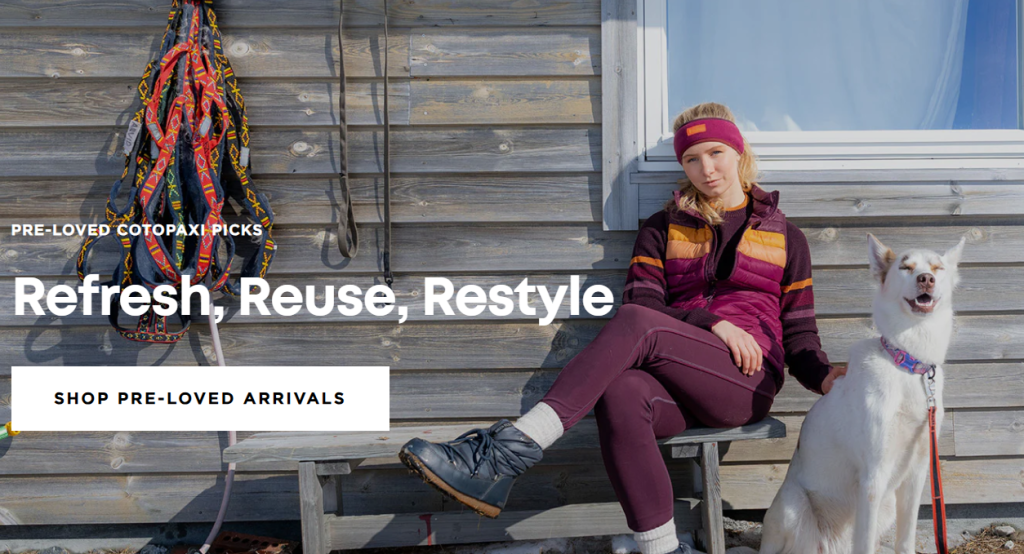 - Cotopaxi (Pre-Loved): Cotopaxi’s “Pre-Loved” site is a dedicated store where customers can “thrift and save”. They emphasise the environmental impact, noting that returning just one clothing item to the circular economy extends its life by an average of 2.5 years. Their Trade-In program allows customers to exchange gently used gear for store credit. This “Resale-as-a-Service” model is powered by specialised partners like thredUP to ensure a seamless logistical experience.